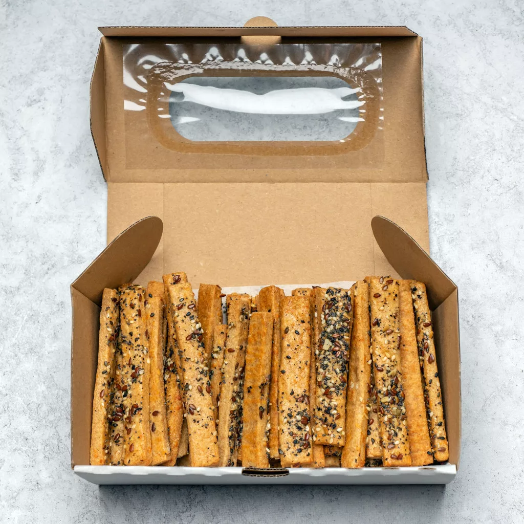 A teljes kiőrlésű tönkölyrúd egy egészséges és ropogós alternatíva a sós nassolnivalók között. Ha egy rostban gazdag, mégis ízletes és könnyed falatra vágysz, ez a tökéletes választás!